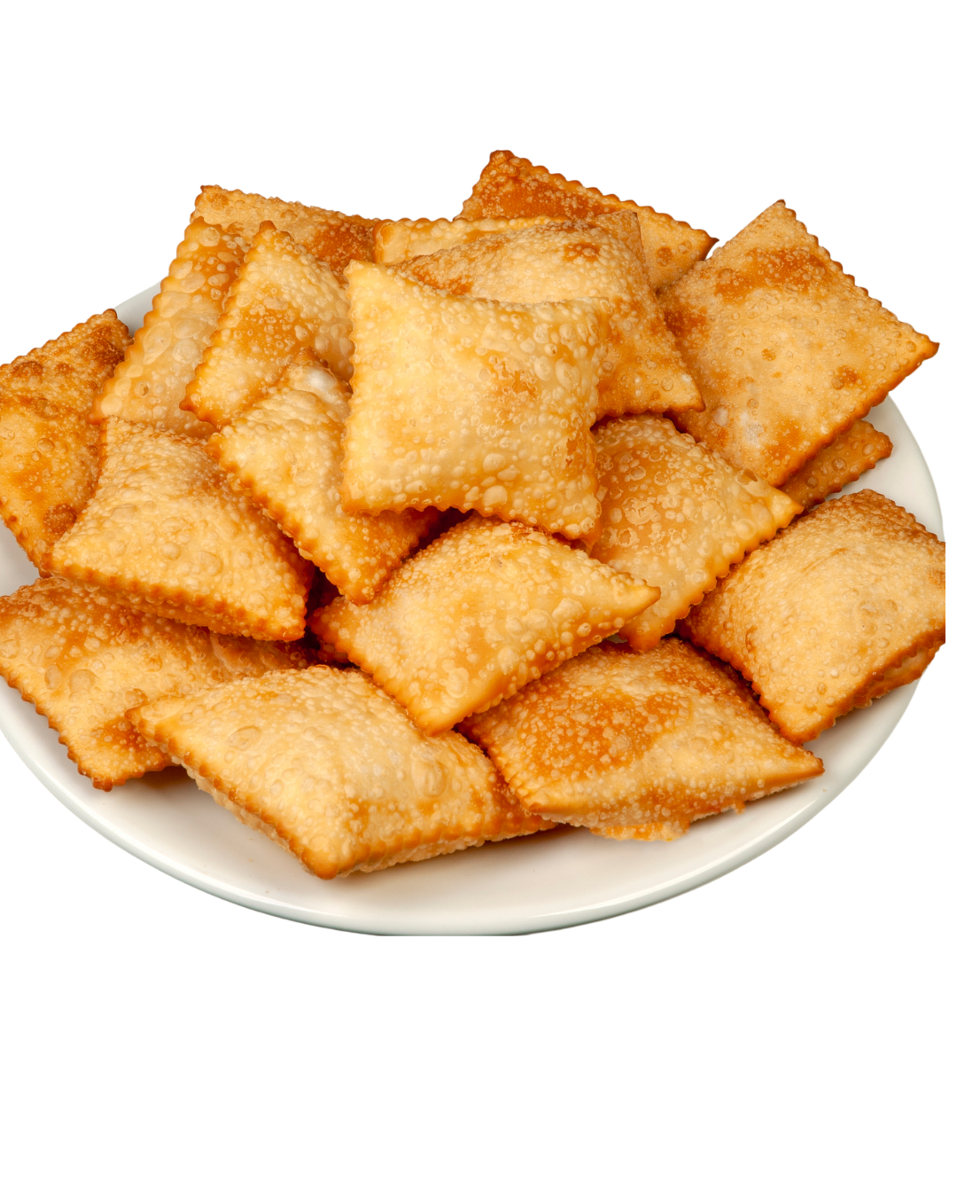 Massa pastel, recheio de queijo ou de carne ,com temperos especiais e